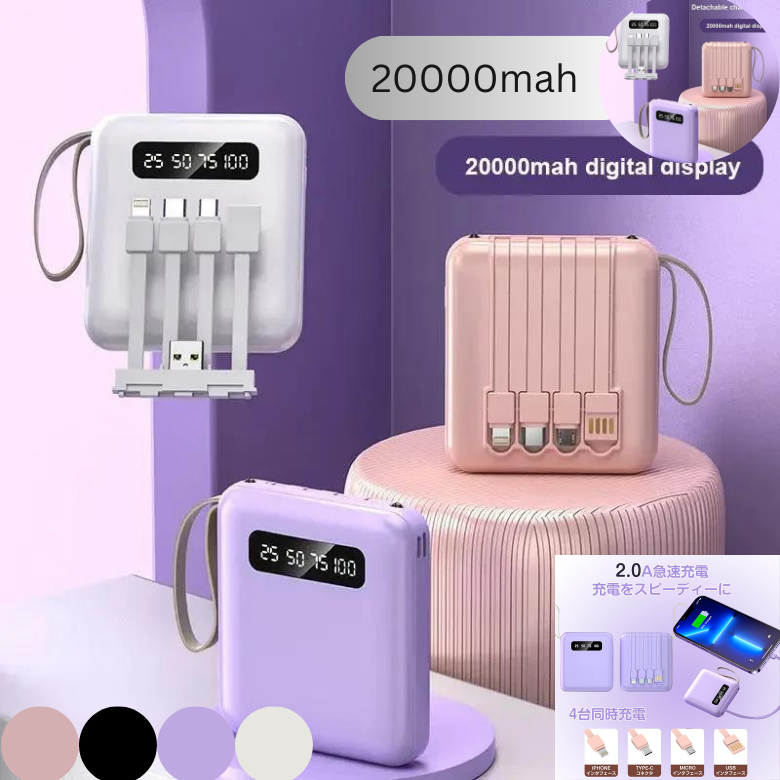 Ultra Slim Power Bank 20000mah With Led Digital Display Travel Phone Powerbank Portable Fast Charger Built In Cable Power Banks